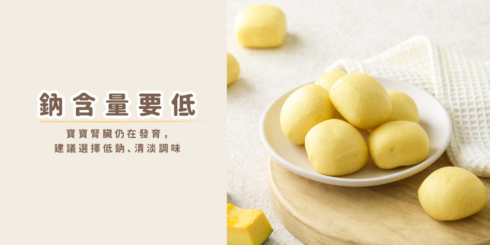 寶寶的腎臟仍在發育,因此飲食建議低鈉、清淡調味。在挑選寶寶饅頭時,可以稍微留意產品的調味方式,避免過多鹽分。