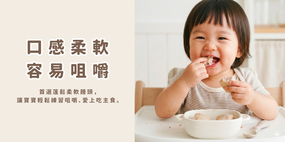 寶寶剛開始練習吃主食時,口感非常重要。建議選擇柔軟、蓬鬆的饅頭,讓寶寶更容易進食,也能慢慢建立咀嚼能力。