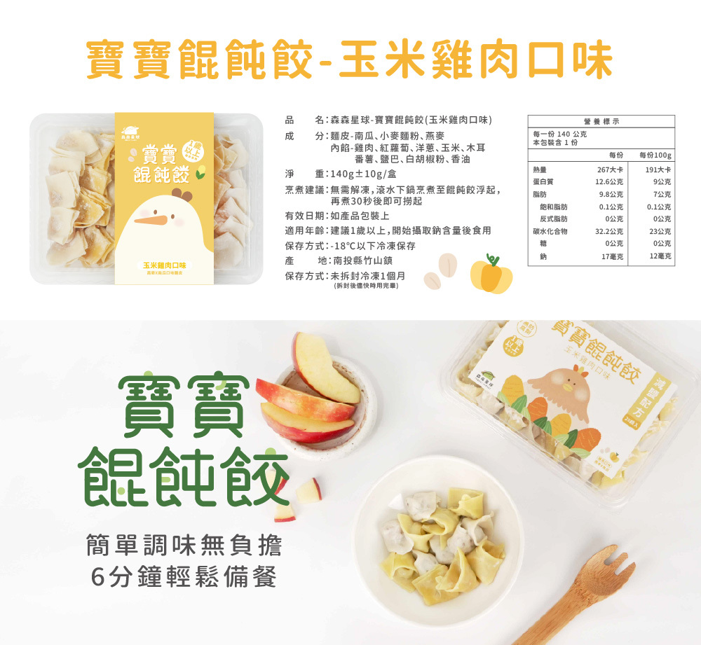 產品內容|寶寶餛飩餃(玉米雞肉口味)