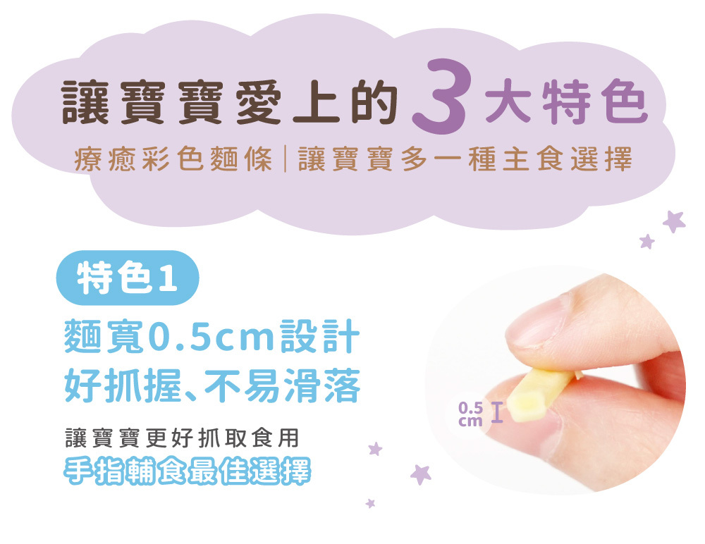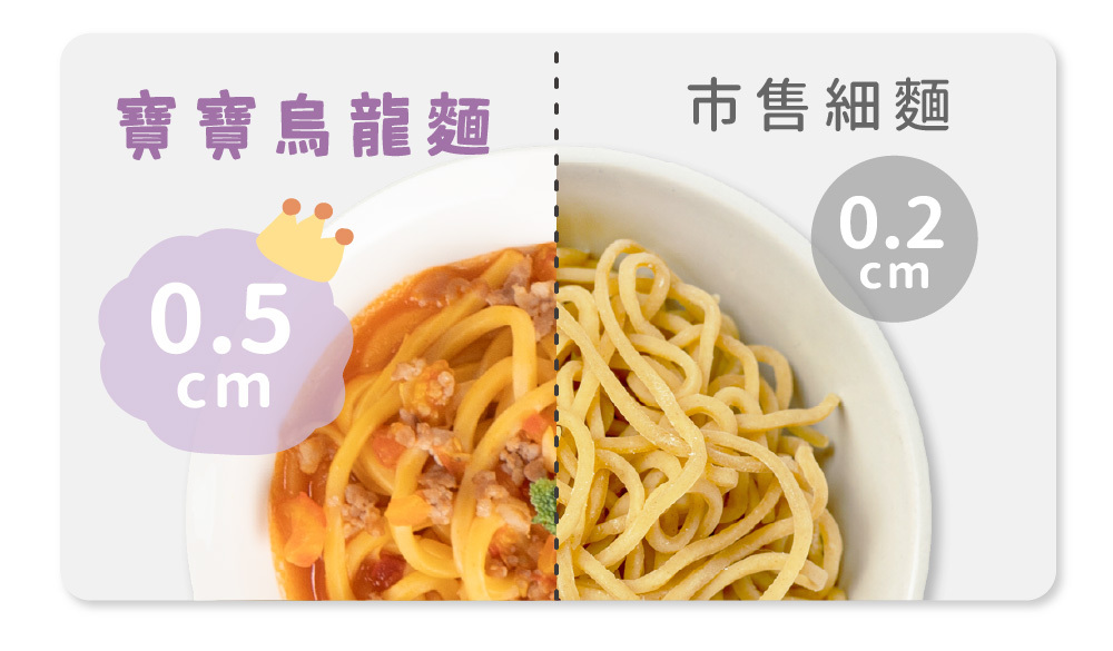 ✔0.5cm麵條寬度設計,訓練寶寶小手靈活度