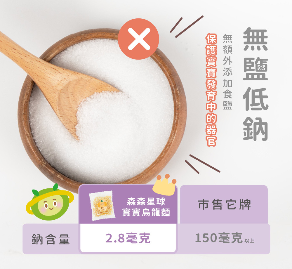 我們能理解媽咪爸比的擔心!森森星球的寶寶烏龍麵沒有額外添加鹽巴喔~