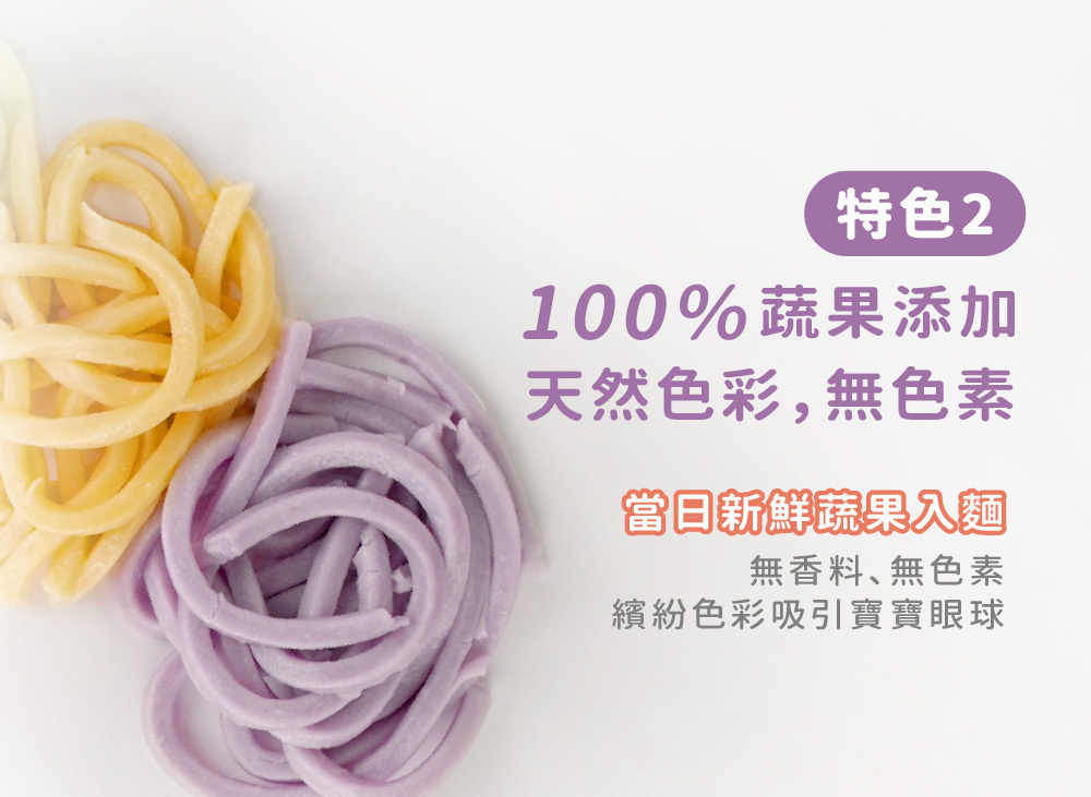 ✔100%天然蔬果麵條,無鹽、無色素、無香料
