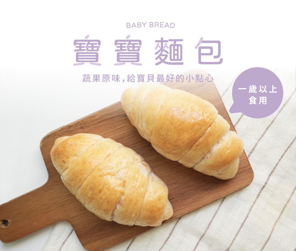 A:寶寶麵包採減糖減鹽設計,口味清淡不厚重,讓寶寶能逐步適應調味,是從副食品過渡到一般麵包的安心第一步!