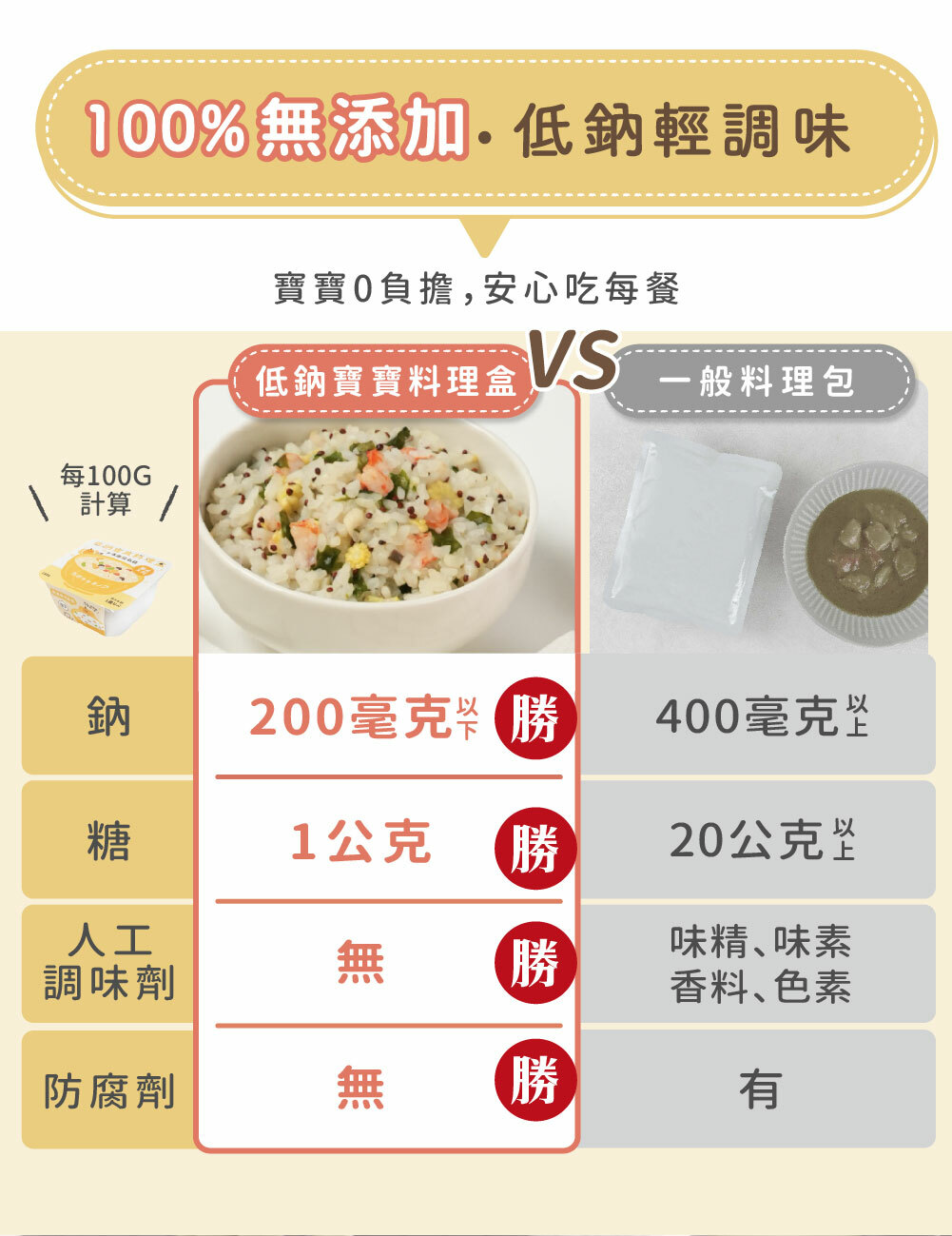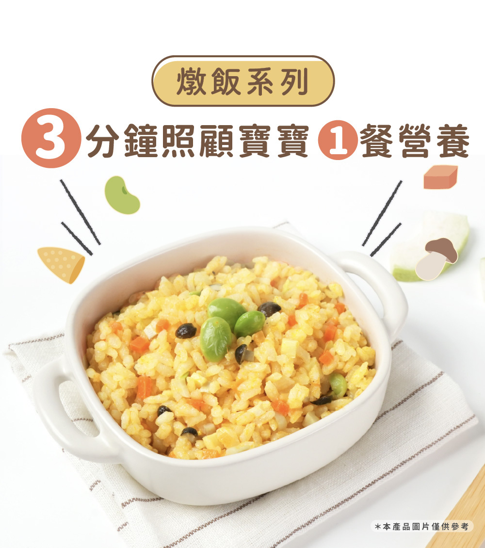 低鈉寶寶料理盒(寶寶燉飯系列)主打低鈉輕調味、零化學添加,嚴選5種天然食材製作,3分鐘微波加熱即可快速上桌。