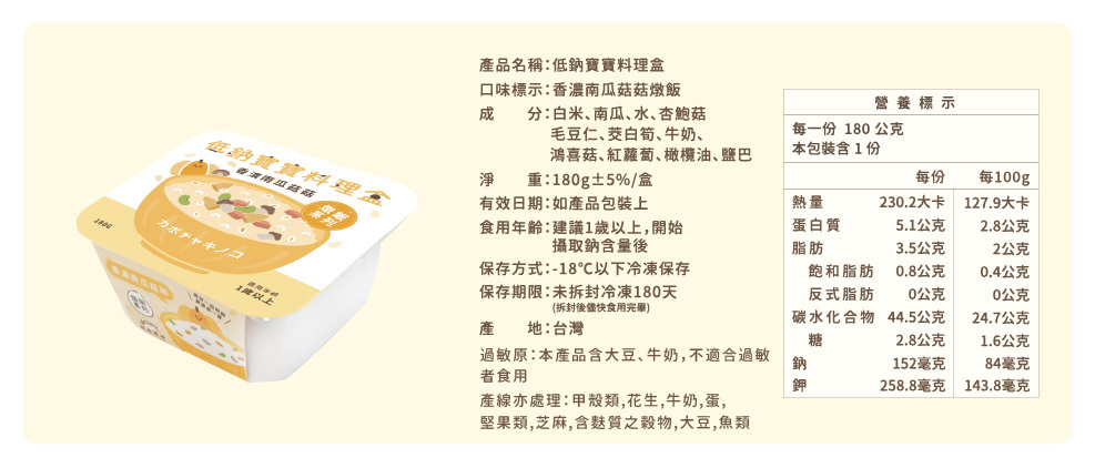 寶寶燉飯|香濃南瓜菇菇(180g/盒)