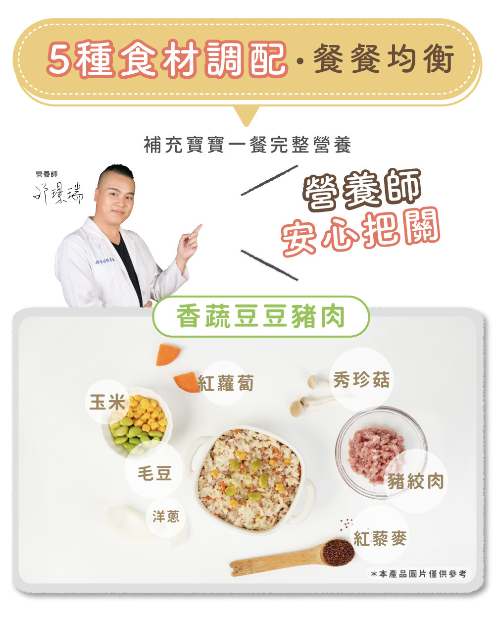 專為1~2歲寶寶研發,口感軟嫩、適合寶寶練習咀嚼,幫助寶寶順利銜接大人餐點,是健康又便捷的副食品新選擇。