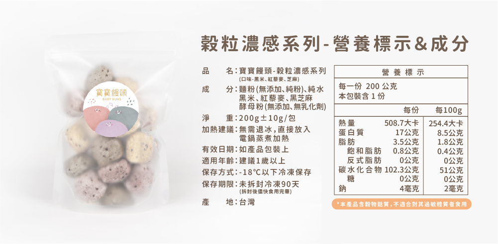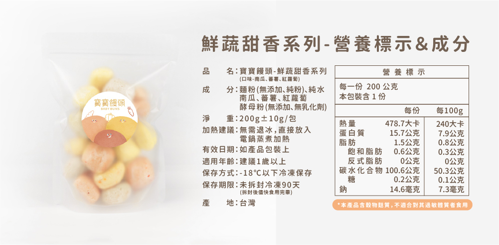 寶寶饅頭|口味:榖粒濃感、鮮蔬甜香