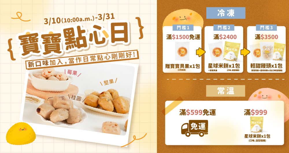 至2026-03-31T16:00:00.000+00:00截止 全店,寶寶點心日|滿$999贈星球米餅(口味隨機)