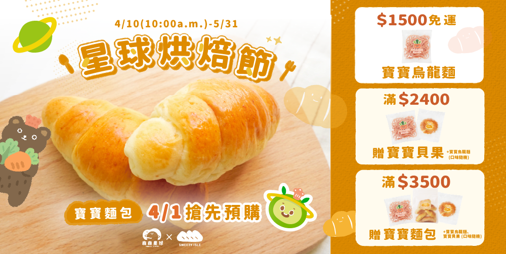 星球烘焙節4/10-5/31|寶寶麵包新上市|點我看更多▶