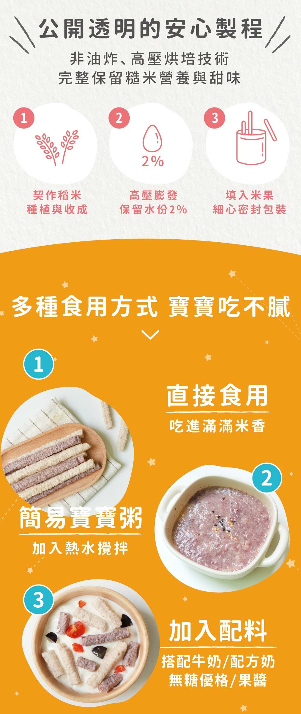 使用100%契作在地糙米,無麩質,敏感寶寶不擔心